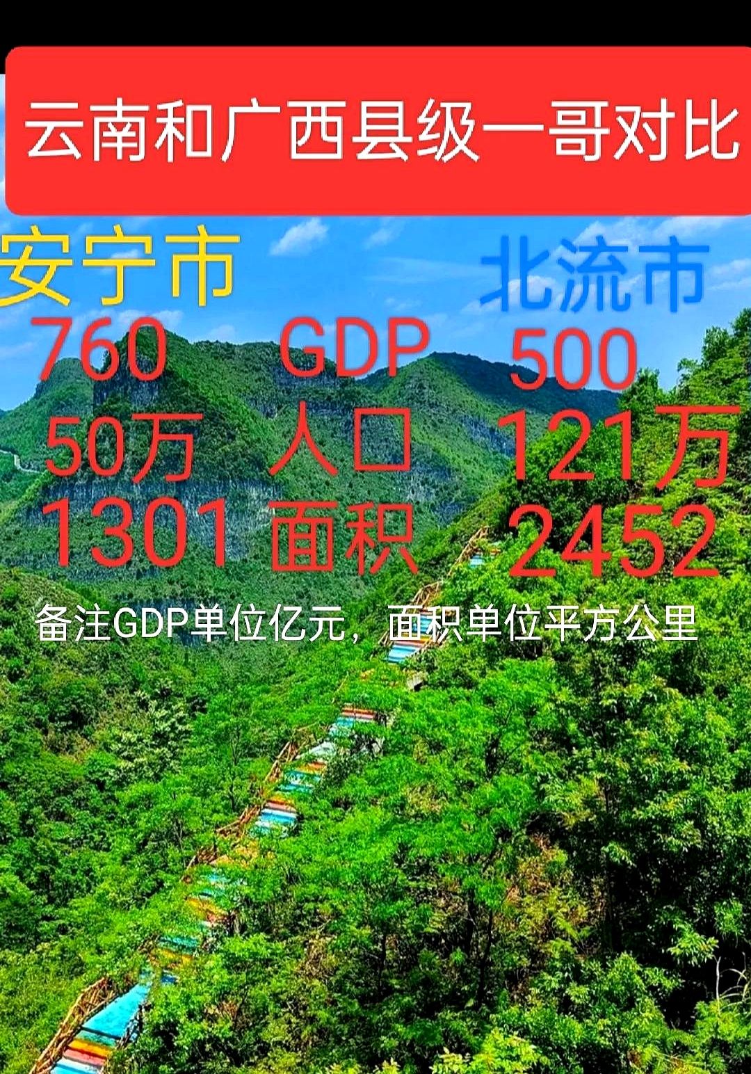安宁市把北流市甩出一大截,地图上看还更小一圈。