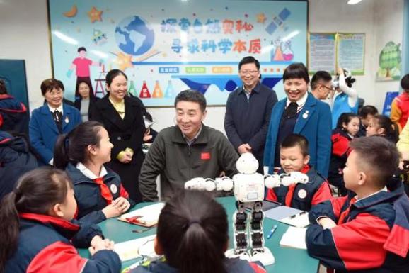 3月5日,由玉林市科协、玉林市教育局联合开展的青少年人工智能志愿科普暨科普大篷车进校园活动在玉州区东成小学开展,为学校4000多名师生带来一场人工智能与前沿科技的沉浸式学习盛宴。玉林市委书记王琛一行亲临现场观摩,与学生们展开亲切交流,共探科技奥秘。