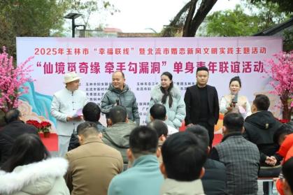 三八节期间,玉林市妇联联合北流市妇联等多部门在北流市勾漏洞开展2025年玉林市“幸福联线”暨北流市婚恋新风文明实践主题活动,进一步加强对年轻人婚恋观、生育观,家庭观的引导,推进婚育服务进万家,为全市广大适婚青年搭建婚恋交友平台。活动现场300多名单身人士参与,热闹非凡,笑语盈盈,充满浪漫与温馨。